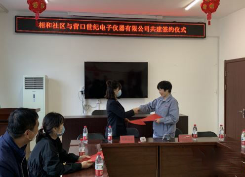 西市區(qū)五臺子街道辦事處相和社區(qū)與營口世紀電子儀器有限公司舉行“共建簽約儀式”